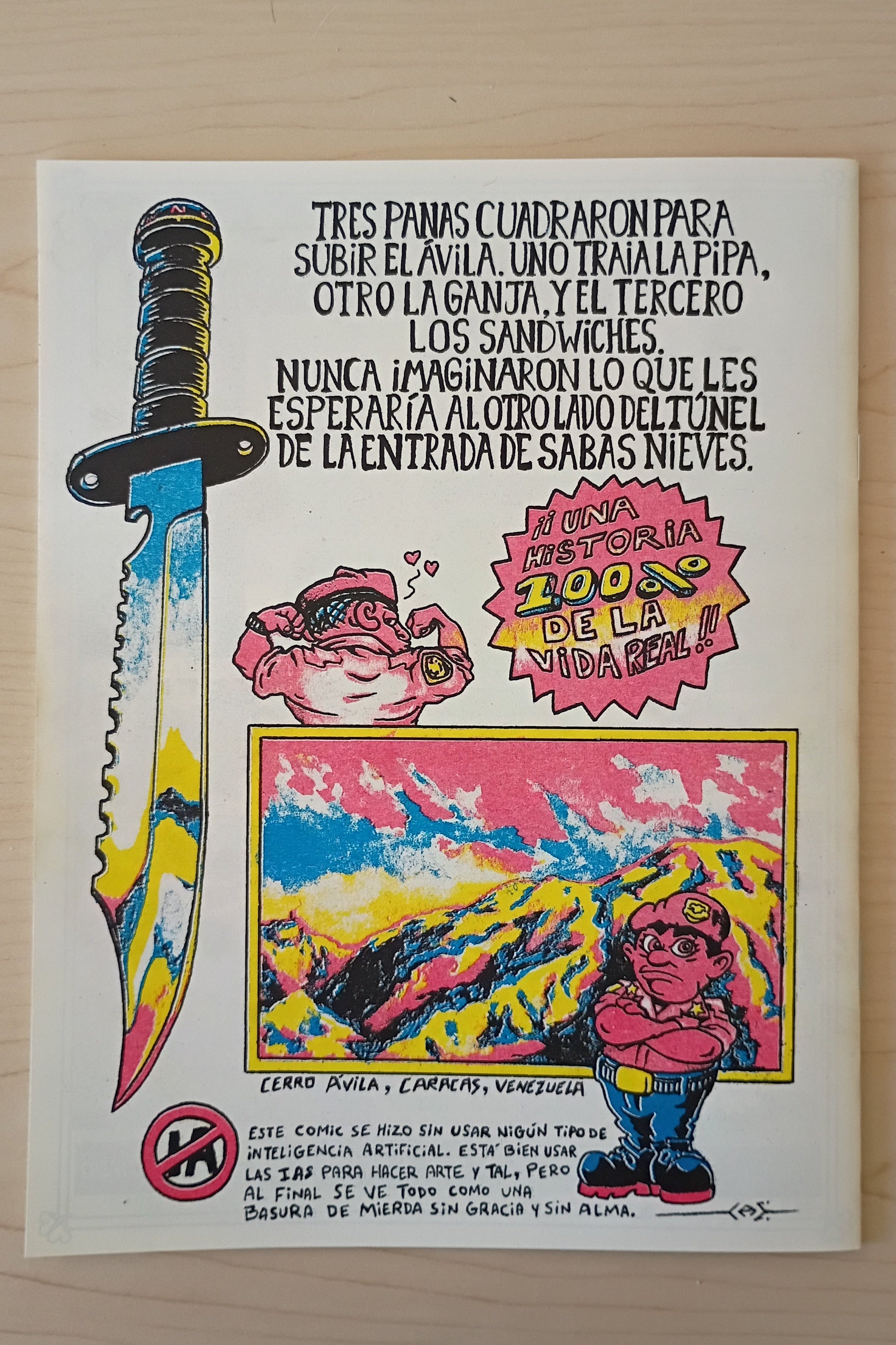 Aquí tenemos un relato de la vida real en formato cómic. El segundo de cómic no-ficción de C.A. Etcheverry, esta vez trata de una historia vivida por él y su amigo David cuando fueron detenidos por la Guardia Nacional de Venezuela, en el Cerro Ávila en 1998.
